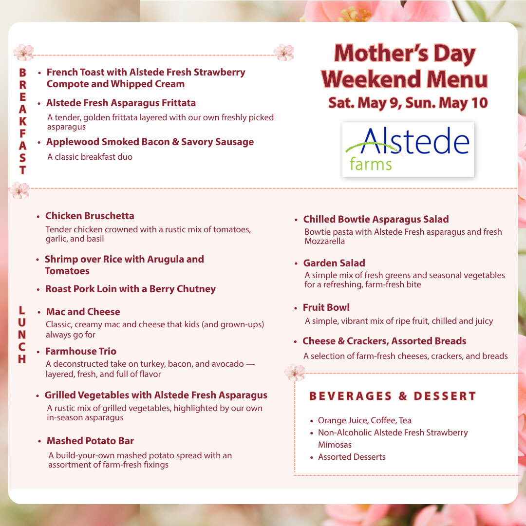 Mother’s Day on the Farm at Alstede Farms | May 9–10, 2026 Celebrate Mother’s Day with a Farm to Table brunch experience in the scenic countryside. Join us for a…