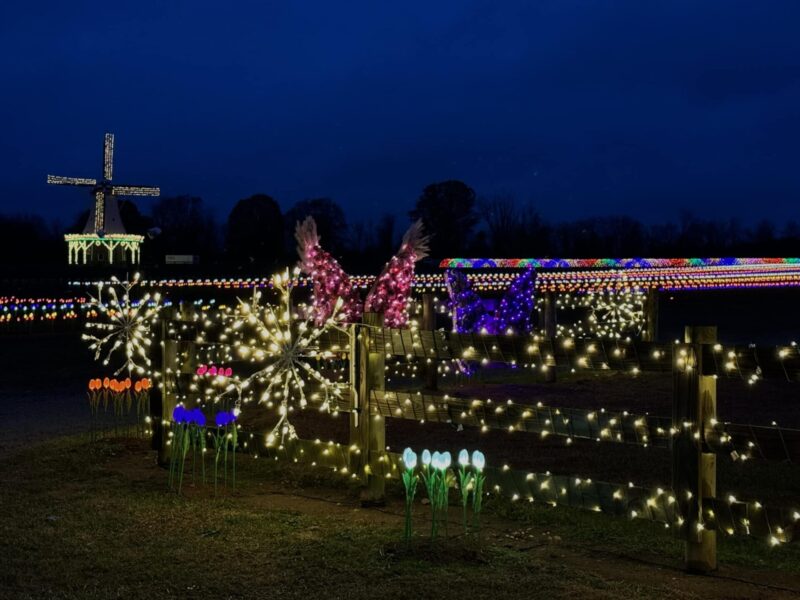 Get ready to take unique holiday photos at Holland Ridge Farms in beautiful, Instagram-ready displays like the Ornament Arch and the Mistletoe Igloo. Take a selfie by the Candy Cane Silo or take a ride and a photo on the Deft Blue Swing, all lit up for the holidays. While you explore and take pictures, you won’t want to miss the Tulip Disco, a colorful disco with a glowing floor and dangling tulips overhead. And you can’t miss the illuminated windmill, which glows for miles. Watch the windmill come alive with dazzling RGB pixel lights, a towering 50-ft pixel tree, and 5,000 glowing tulip lights, all dancing in sync to your favorite holiday music every 30 minutes. And get ready to light up those nights when on December 18th, 19th, and 20th, there will be a 200-drone light show and music show at 6 PM and 8 PM. Watch the sky come alive with a 10-minute show set to your favorite festive tunes.